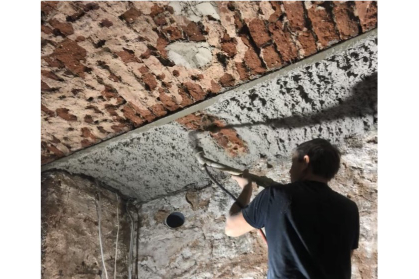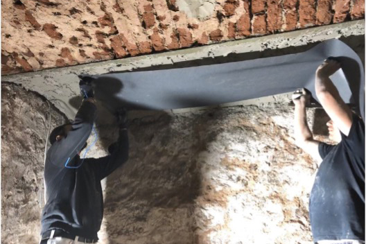 Hier im Winter die Unterstützung der Trocknung der Bodendämmung, bestehend aus IZONIL® QUATRO.