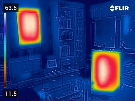 Infrarot-Heizplatten immer so ausrichten, dass sie ihre Wärme vom Fenster weg oder parallel zum Fenster in den Raum hinein abgeben … hier vom Fenster weg, in die Tiefe des Zimmers hinein.